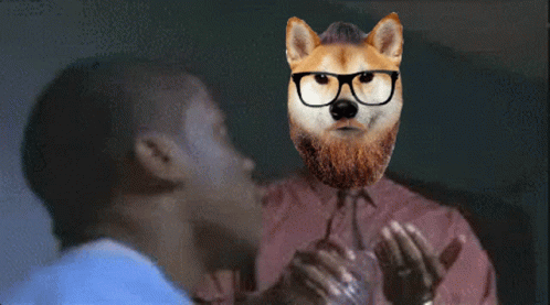 Paglalarawan ng Content: a dog with glasses and a beard is standing in front of a man
