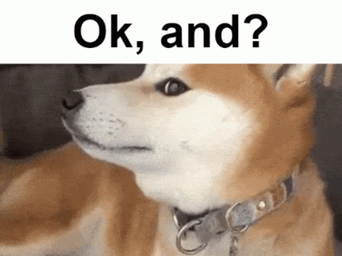 Paglalarawan ng Content: a dog wearing a collar is looking at the camera with the words ok and written above it .