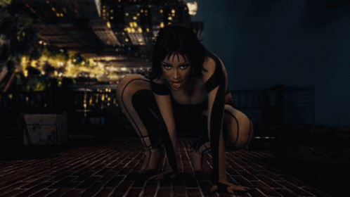 Paglalarawan ng Content: a woman is crawling on a brick floor with her mouth open