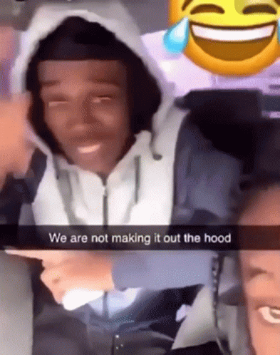 Paglalarawan ng Content: a man in a white hoodie is making a funny face with the words we are not making it out the hood below him