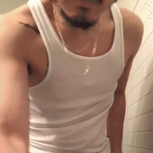 Paglalarawan ng Content: a man with a beard wearing a white tank top and a choker .