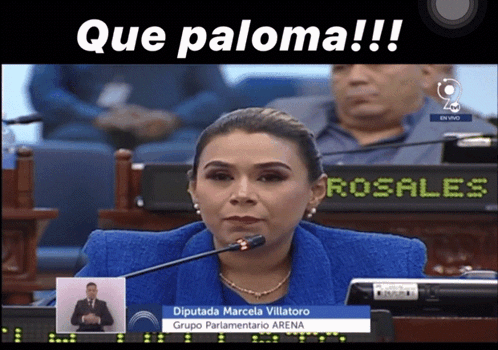 Paglalarawan ng Content: a woman in a blue coat stands in front of a microphone and says que paloma !!!