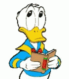 Paglalarawan ng Content: donald duck is holding a book in his hands