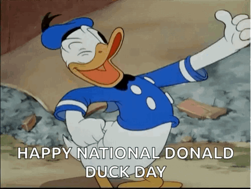 Paglalarawan ng Content: donald duck is giving a thumbs up and saying happy national donald duck day