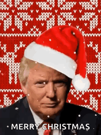 Paglalarawan ng Content: donald trump is wearing a santa hat on a christmas sweater .