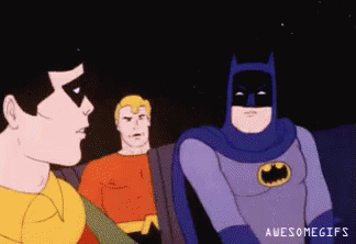 Paglalarawan ng Content: a cartoon of batman robin and superman talking