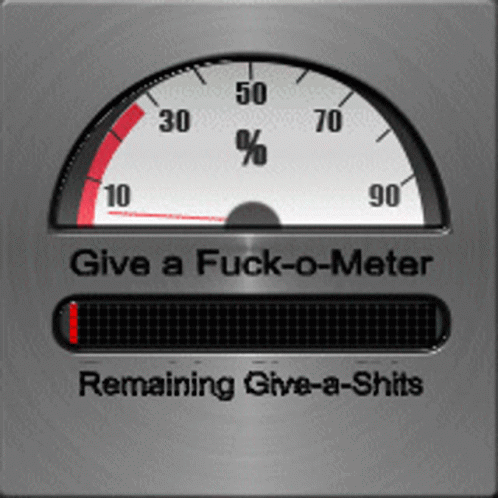 Paglalarawan ng Content: a gauge that says give a fuck-o-meter remaining give-a-shits on it