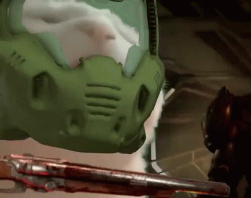 Paglalarawan ng Content: a painting of a green helmet and a gun