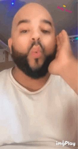 Paglalarawan ng Content: a man with a beard is blowing a kiss with the words baby boop in the corner