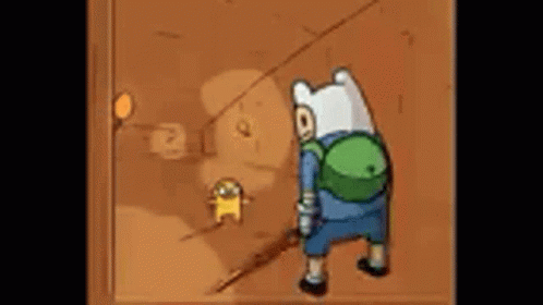 Paglalarawan ng Content: a cartoon character from adventure time is standing in front of a door holding a stick .