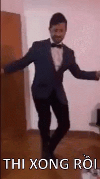 Paglalarawan ng Content: a man in a tuxedo and bow tie is dancing .