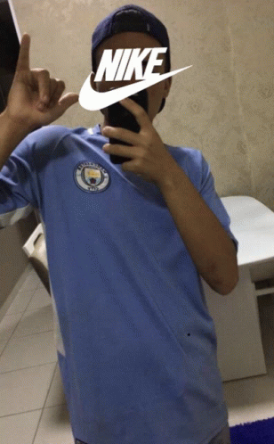 Paglalarawan ng Content: a man taking a picture with a nike logo on his face