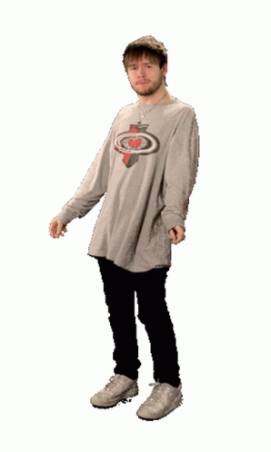 Paglalarawan ng Content: a man wearing a gray shirt with a heart on it is dancing