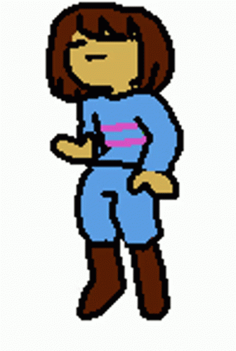 Paglalarawan ng Content: a pixel art drawing of a girl with a blue shirt and brown boots