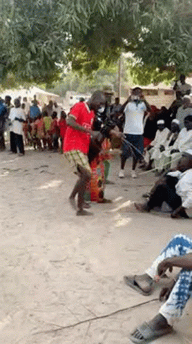 Paglalarawan ng Content: a man in a red shirt is dancing in front of a crowd .