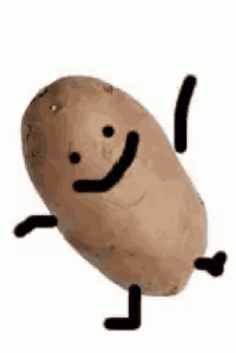 Paglalarawan ng Content: a potato with arms and legs is dancing with a smiley face .