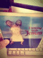 Paglalarawan ng Content: a person is holding a picture of jesus dancing on a laptop
