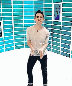 Paglalarawan ng Content: a man in a white shirt and black jeans is dancing in a room with blue tiles