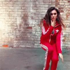 Paglalarawan ng Content: a woman in a red adidas tracksuit squatting