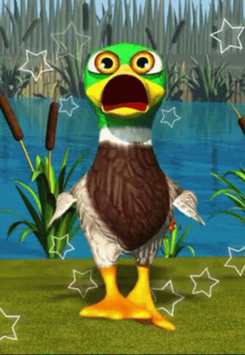 Paglalarawan ng Content: a cartoon duck is standing in front of a pond with stars around it