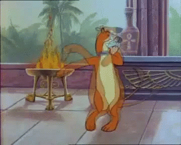 Paglalarawan ng Content: a cartoon cat standing in front of a fire