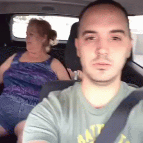 Paglalarawan ng Content: a man is taking a selfie in a car with an older woman sitting in the back seat
