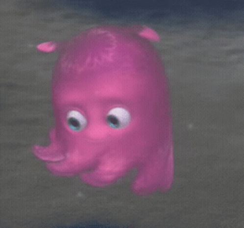 Paglalarawan ng Content: a pink cartoon character with big eyes is floating in the air