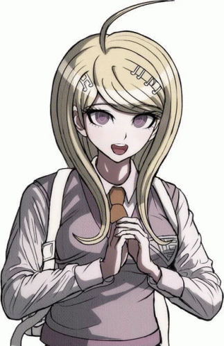 Paglalarawan ng Content: a girl with blonde hair and purple eyes is wearing a backpack and a tie .