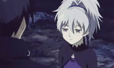 Paglalarawan ng Content: a girl with white hair is holding her finger to her mouth and looking at a man .