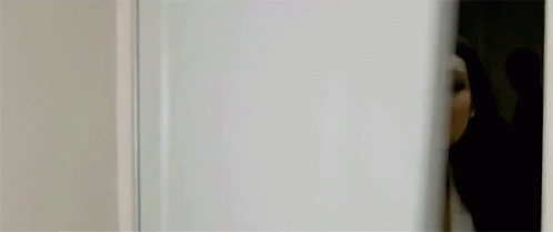 Paglalarawan ng Content: a woman is peeking out from behind a door in a dark room