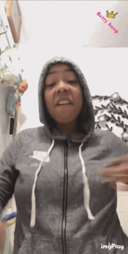 Paglalarawan ng Content: a woman wearing a grey nike hoodie with a crown on it
