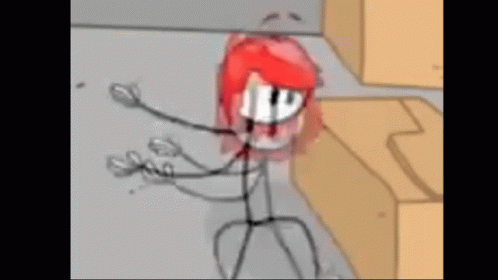 Paglalarawan ng Content: a stick figure with red hair and a white face is standing next to a cardboard box .