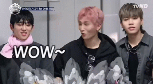 Paglalarawan ng Content: three men are standing next to each other and one of them is saying wow
