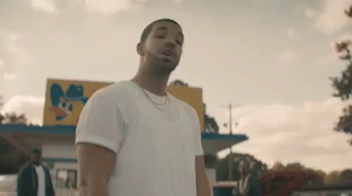 Paglalarawan ng Content: a man in a white t-shirt and chain is standing in front of a gas station .
