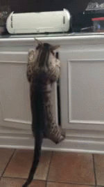 Paglalarawan ng Content: a cat is standing on its hind legs on a cabinet door