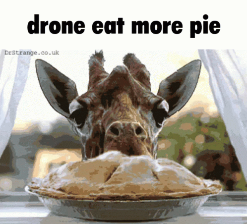 Paglalarawan ng Content: a giraffe eating a pie with the words " drone eat more pie " below it