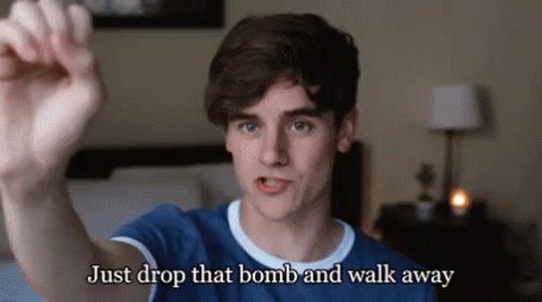 Paglalarawan ng Content: a young man says just drop that bomb and walk away
