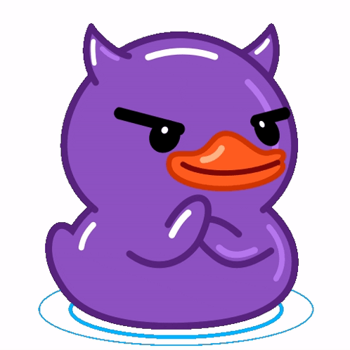 Paglalarawan ng Content: a purple rubber duck with devil horns and a yellow beak