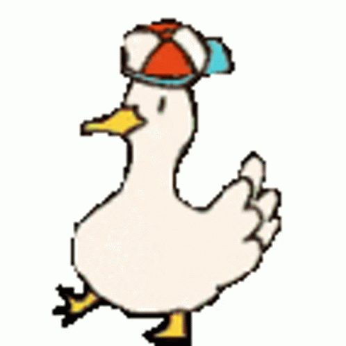 Paglalarawan ng Content: a duck wearing a hat and headphones is walking .
