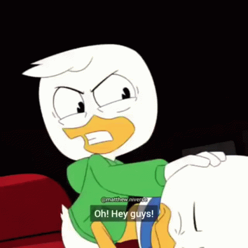Paglalarawan ng Content: a cartoon of a duck talking to another duck with the caption oh hey guys