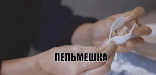 Paglalarawan ng Content: a close up of a person making a dumpling with the word пельмешка in the background