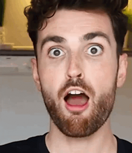 Paglalarawan ng Content: a close up of a man with a beard making a surprised face with his mouth open .