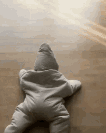 Paglalarawan ng Content: a baby is crawling on the floor in a star shaped outfit .