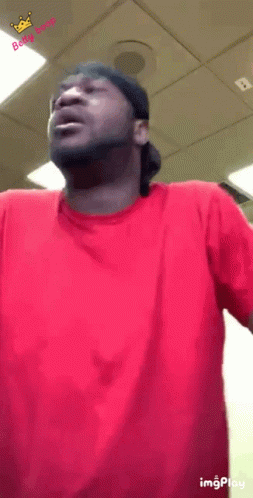 Paglalarawan ng Content: a man in a red t-shirt is standing in a room with a ceiling that says being boop