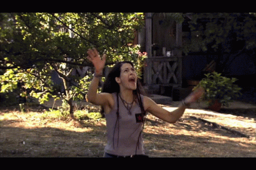Paglalarawan ng Content: a woman screams in front of a house with a x on the porch