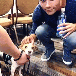 Paglalarawan ng Content: a man kneeling down holding a bottle of aquafina water