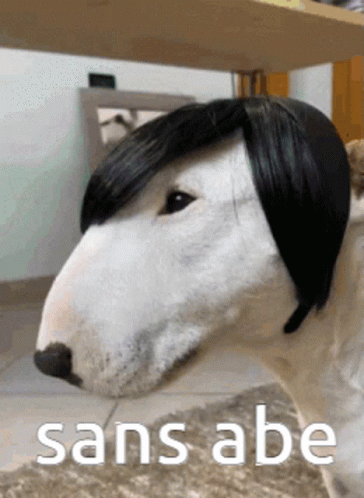 Paglalarawan ng Content: a dog wearing a black wig with the words sans abe written below it