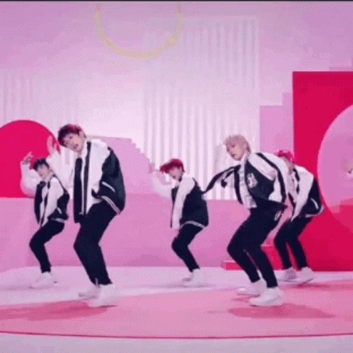 Paglalarawan ng Content: a group of young men are dancing together on a pink and red stage .