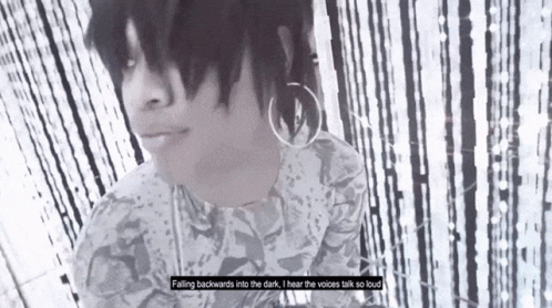 Paglalarawan ng Content: a black and white photo of a woman with the words falling backwards into the dark