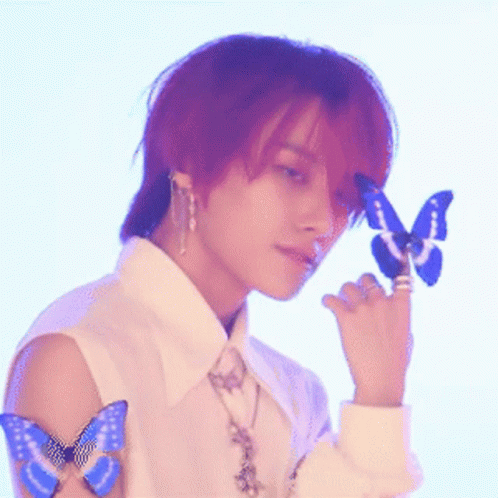 Paglalarawan ng Content: a young man with red hair is holding a blue butterfly on his finger